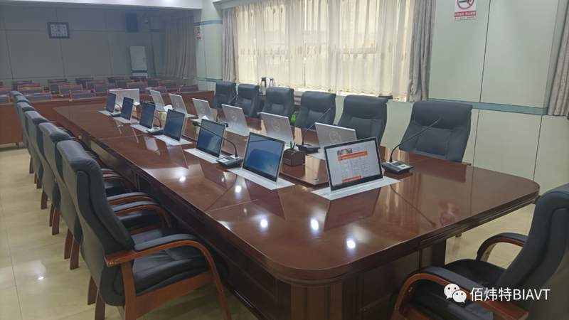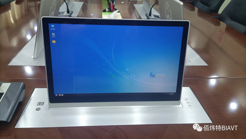 BIAVT根據原有桌面開孔尺寸,定制了14臺多媒體超薄升降終端,設備高端大氣,代替原有配置低、卡頓、分辨率低等問題。