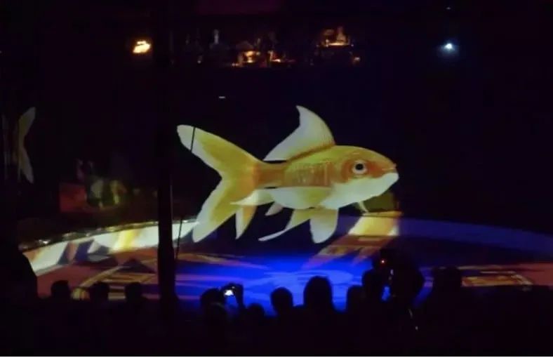 Circus Roncalli馬戲團(tuán)投資了50萬歐元(約合人民幣388萬元),將3D動物全息圖展示在長32米、寬5米的舞臺上,放映大象、馬和金魚的3D全息動畫作為表演的一部分,配以巧妙的特效,為全場觀眾獻(xiàn)上一場奇特的馬戲表演。