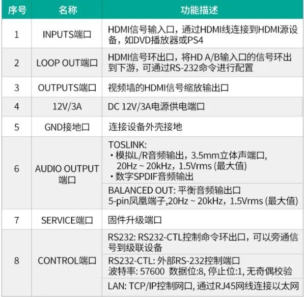 RS232-CTL控制命令環(huán)出口,可以旁通信號(hào)到級(jí)聯(lián)設(shè)備,控制下一級(jí)設(shè)備。