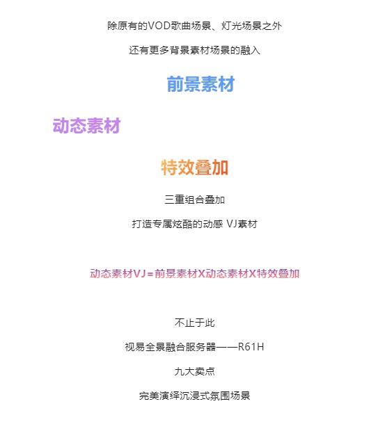 VOD畫面接入R61H實(shí)現(xiàn)智能開窗效果,同時(shí)可以根據(jù)場(chǎng)景編排,實(shí)現(xiàn)放大縮小效果等效果,滿足各類開窗模式需求,可以一邊唱歌,一邊欣賞C沉浸式氛圍。