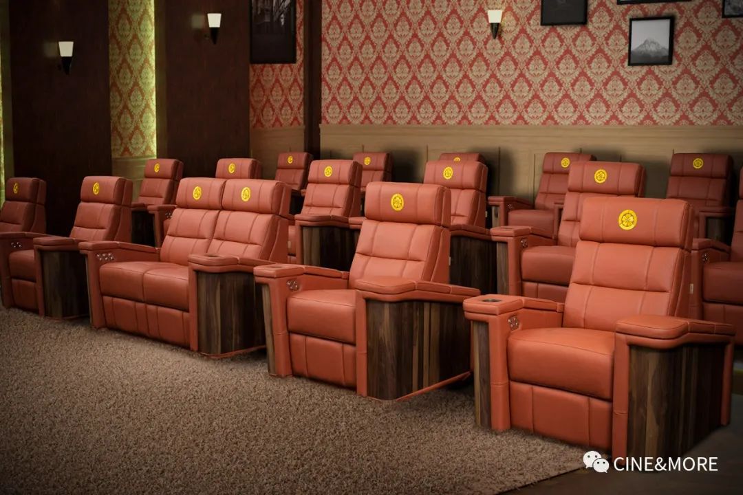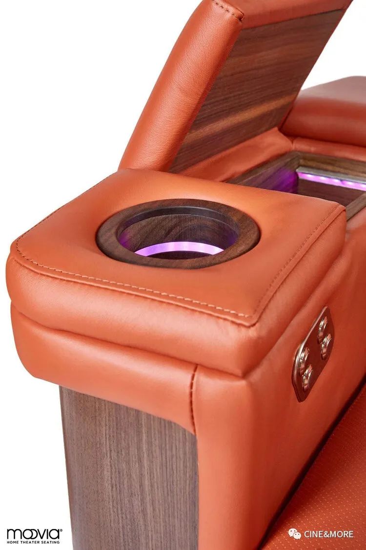三排富貴橙MOOVIA STOCKHOLM斯德哥爾摩家庭影院椅,在氛圍感至上的影院空間,將造型和功能互相結(jié)合,融合在富麗堂皇的優(yōu)雅與精致復雜的設計中。
