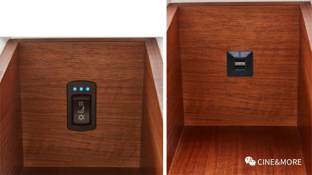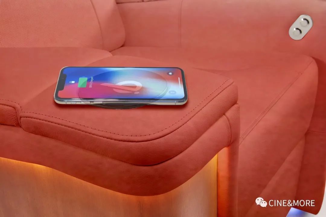 當然,也不僅限于此,扶手處還可配置QI手機無線充電器,扶手儲物箱內(nèi)可嵌入智能面板,可接入快思聰、Control4和Savant等家庭自動化系統(tǒng)——在家庭影院里的所有功能,你躺在舒適的影院沙發(fā)上,就能一手掌控。