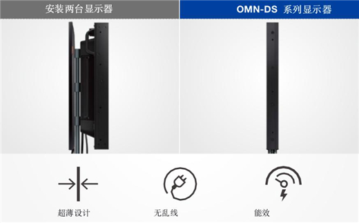 三星雙面顯示屏OMN-DS系列面向室外的屏幕具有鮮亮的視覺效果和突出的促銷定位,可有效吸引注意力,而其面向室內(nèi)的顯示屏?xí)ㄟ^顯示促銷活動(dòng)、新商品,以及有關(guān)門店及其服務(wù)的其他信息,提升顧客的購物體驗(yàn)。與安裝兩個(gè)單獨(dú)的顯示屏相比,這種功能二合一的顯示屏降低了設(shè)備和安裝成本,提高了零售商的信息傳遞和運(yùn)營效率。本款顯示屏還提供了更多的定位選擇——既可以輕松安裝在支架上,也可懸掛在天花板上。巧妙靈活的設(shè)計(jì)創(chuàng)造出簡潔有序的外觀,隱藏式頂蓋使得線纜不再雜亂無章,超薄的外型也不會(huì)轉(zhuǎn)移人們對店內(nèi)產(chǎn)品的注意力。因此,OMN-DS 系列顯示屏釋放了空間,為零售商向潛在客戶推銷產(chǎn)品提供了更多自由度,輕松定制店面小型櫥窗展示屏。