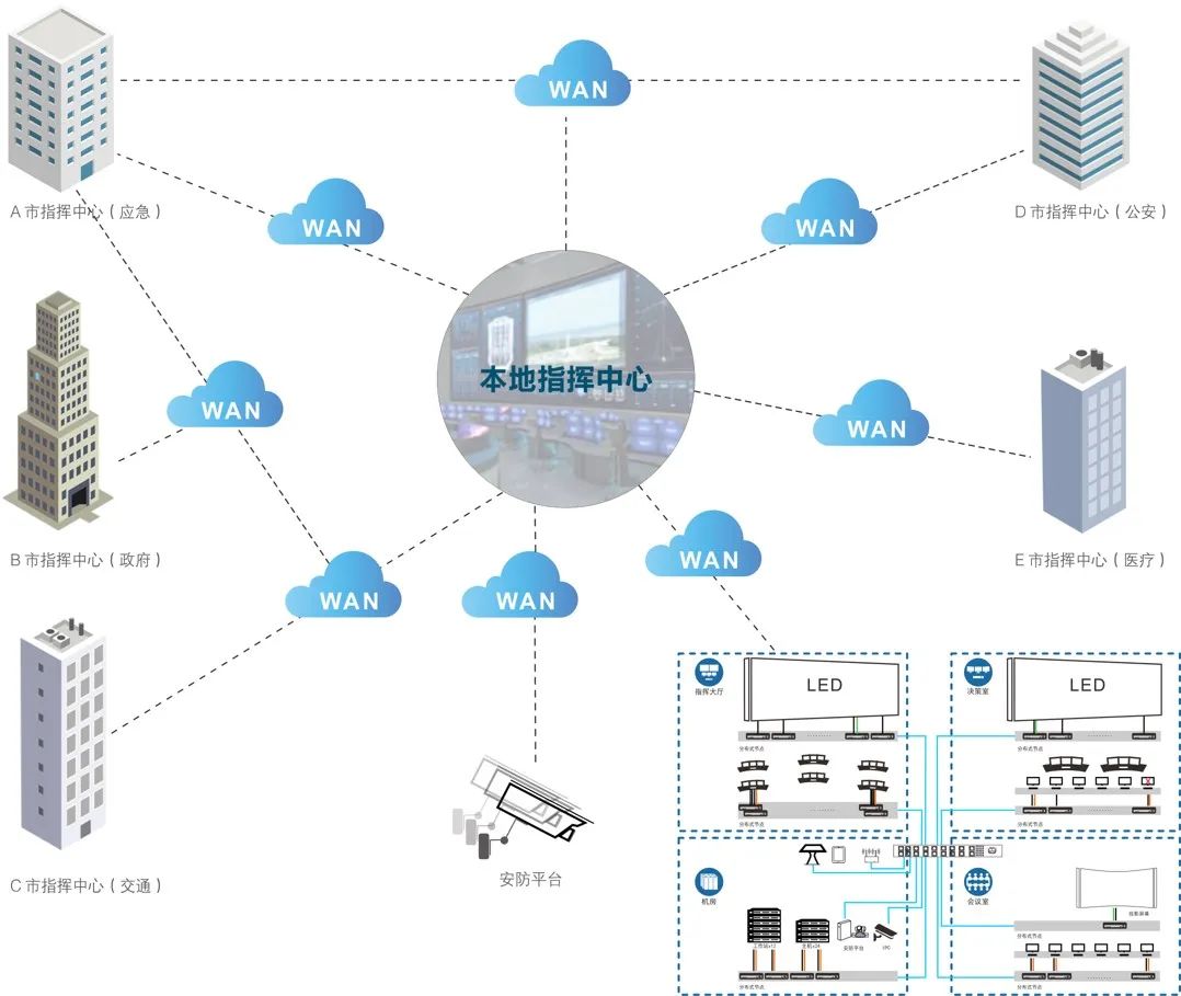 可預覽其他區(qū)域視頻信號、進行控制、感知狀態(tài)等,實現多區(qū)域信號和控制互聯(lián)互通,資源整合利用,從而實現多區(qū)域的互聯(lián)互通。