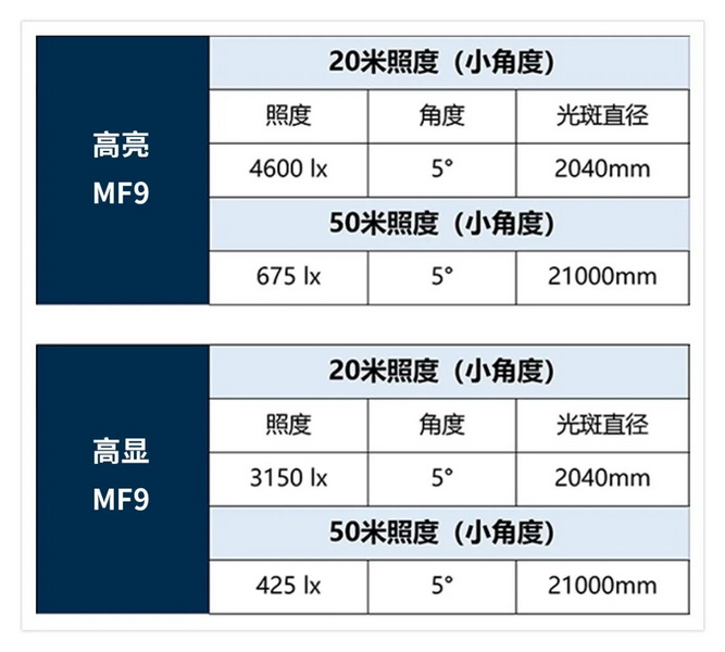 選擇800W功率的原因?是基于亮度與重量體積的平衡,有客戶(hù)和我們反饋1000W的LED切割燈太重太大,而600W的用在戶(hù)外又亮度顯弱,下表有MF9的照度參考值。