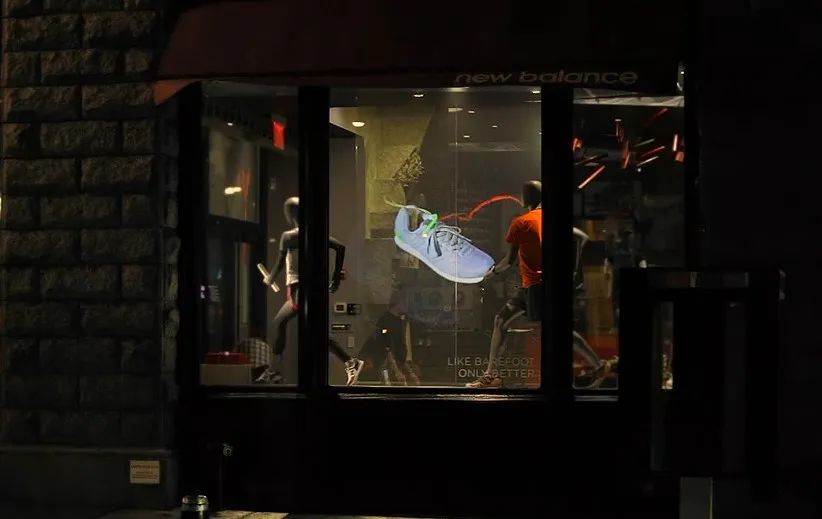 只需在商家的玻璃櫥窗、玻璃門等地方的玻璃上,貼附上一層特制的全息投影膜。