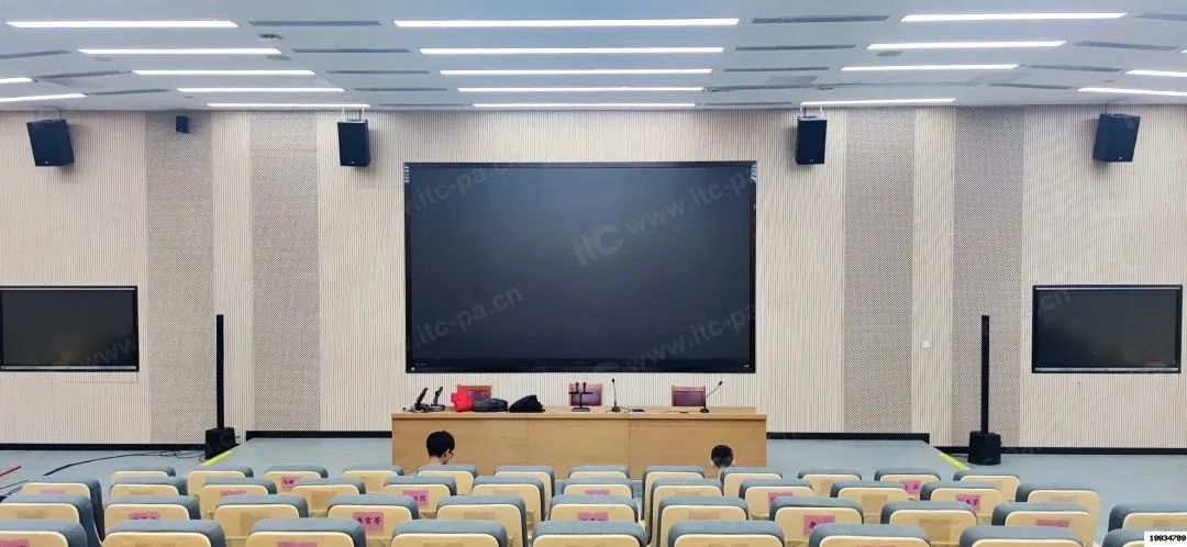 為解決上述問題,itc通過計(jì)算報告廳的音響場地系數(shù)進(jìn)行設(shè)計(jì),將4只350W輔助音箱、2只400W落地組合式音箱合理分布于報告廳場所,降低聲反饋概率,提高傳聲增益,解決嘯叫難題,保證報告廳每個角落的聲場聽覺均勻,具備良好的指向性控制,打造出卓越的擴(kuò)聲體驗(yàn)。