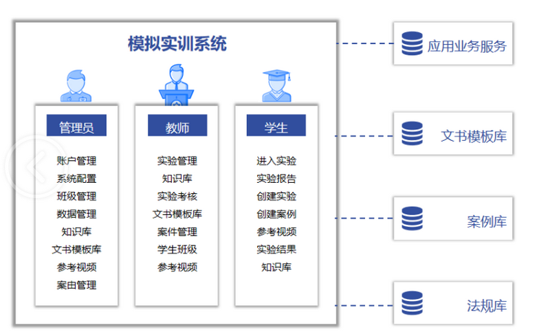 視通科技自主研發(fā)了一款法學類模擬教學實訓系統(tǒng),用于學生開展模擬審判實訓使用,實現(xiàn)案件模擬實訓、案件審理角色模擬、審理流程指引、實踐案例培訓等。