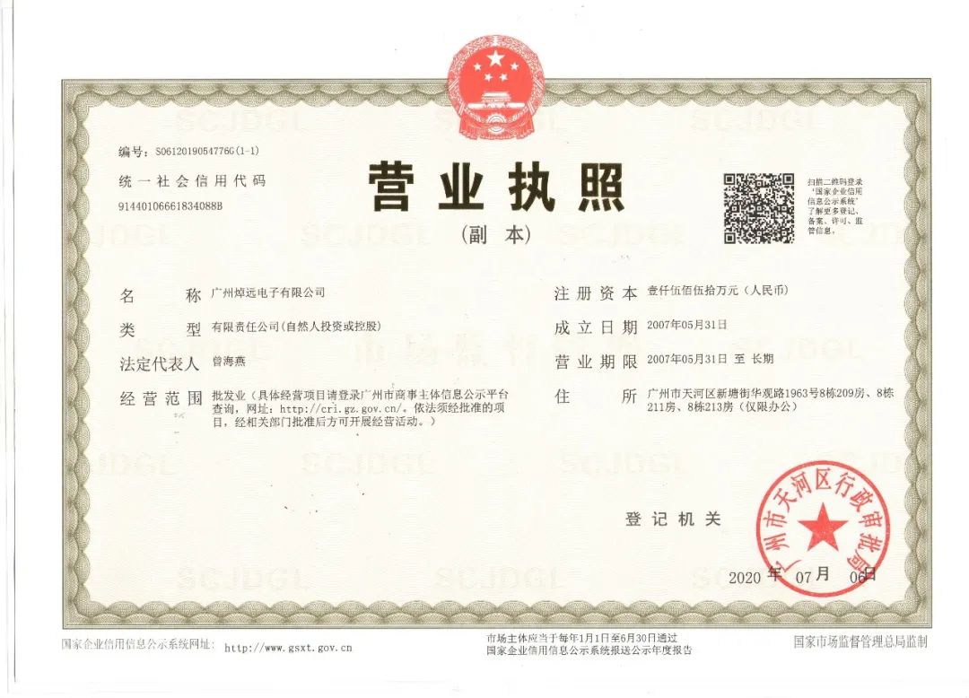 廣州焯遠電子有限公司成立于2007年,深圳市焯遠電子有限公司成立于2022年,與廣州焯遠電子有限公司攜手同行。