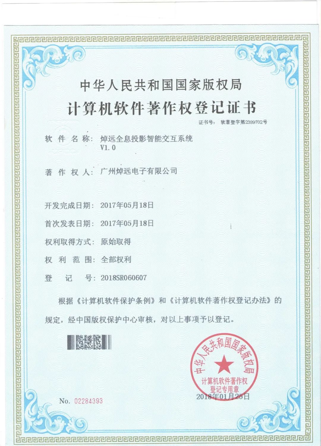 全息投影智能交互系統(tǒng)證書
