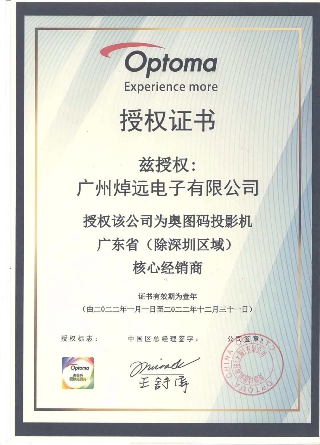 “奧圖碼工程投影機華南區(qū)總代”