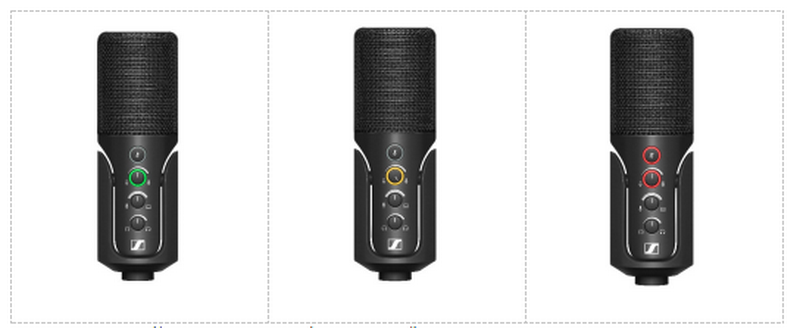 Profile USB 麥克風上的 LED 燈環(huán)可直觀顯示工作狀態(tài)。當增益控制旋鈕的 LED 燈環(huán)呈綠色時,代表麥克風已準備就緒。若該燈環(huán)閃爍黃色或一直顯示黃色時,代表麥克風出現(xiàn)削波,用戶需要降低麥克風音量。當麥克風靜音時,靜音按鈕和增益控制旋鈕的燈環(huán)將亮起紅色。