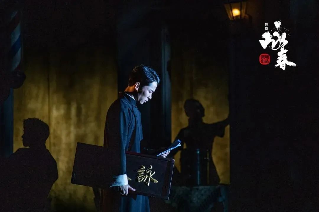 從影業(yè)公司到武館街,再到香云紗制作田間,時空在投影變換與置景慢轉(zhuǎn)中流暢轉(zhuǎn)換,“戲中”與“戲外”的兩個世界也得以在同一舞臺無縫切換。