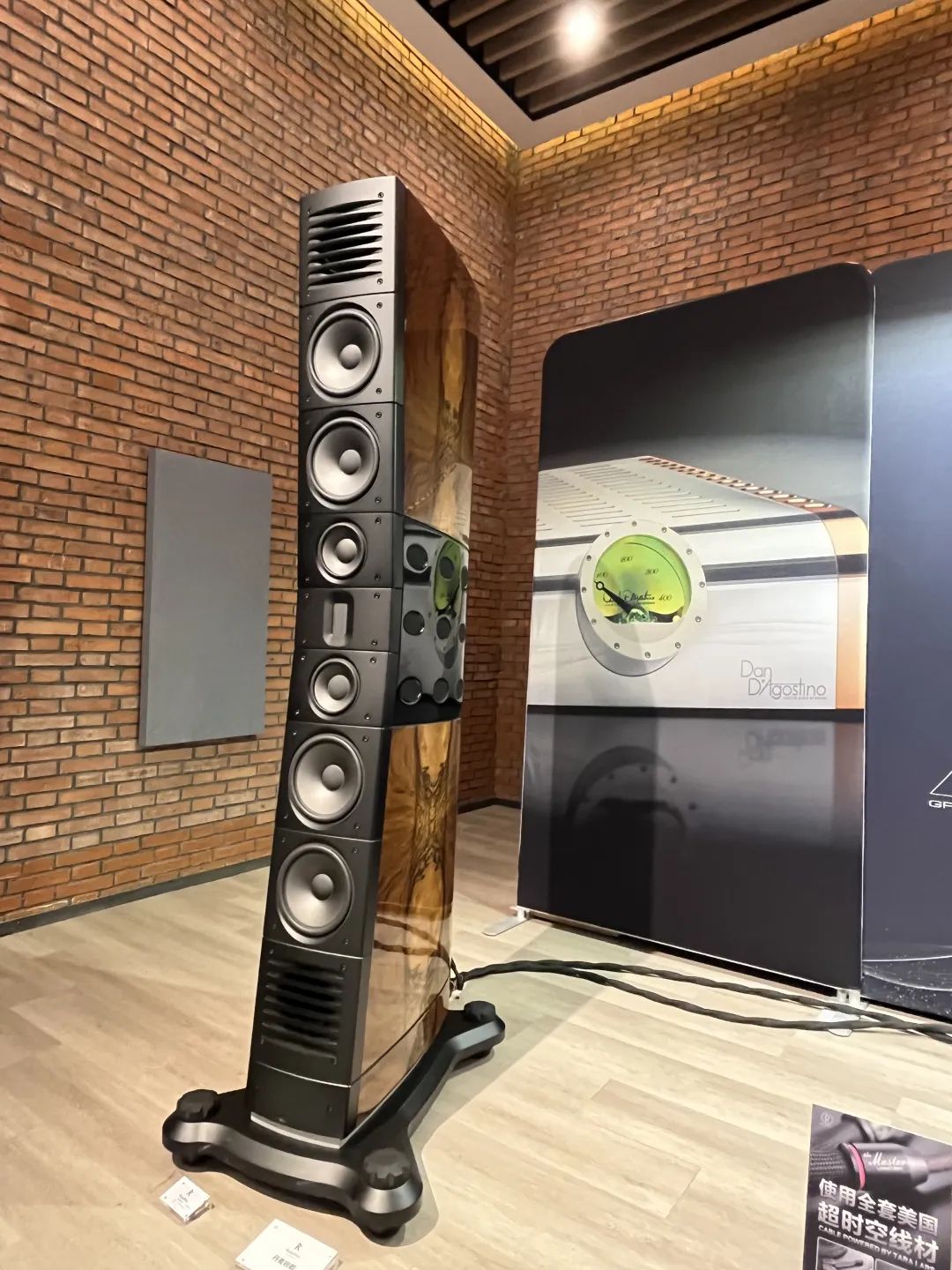 展會現(xiàn)場帶來了Raidho Acoustics旗艦級喇叭,較大的發(fā)聲箱體有著先天優(yōu)勢,較大的箱體容積比,及可配置直徑較大或數(shù)量較多的驅動單元。無論如何,相對比小型箱體,播放大編制樂章有著更大的完整性優(yōu)勢,就如D5.1正是這類別的音箱。旗艦版本的D5.1,我們用上了大形鉆石驅動單元–於每枚箱體上安裝4個低音驅動單元,以配對模塊方式,分別安排於箱體上,能提供強勁的低頻量感,低頻通透有速度,音調自然而富質感。D5.1的表現(xiàn)帶活生感;無論是重播量感十足的低音大提琴或是清脆的套鼓演奏;熱度十足火花四濺的吉他獨奏或微弱的人聲變化;也能讓你聽得清清楚楚。鼎鼎大名的威豪平面式高音單元( Raidho planar tweeter ),配上兩枚專利鉆石中音驅動單元,全部安裝在獨立抗震箱體上, 整體播放表現(xiàn)是非常令人震撼的。重點是每個音箱所安裝的7枚獨立驅動單元,工作模式以全對稱式,垂直線性列陣安排,完美的線性相位排列與時間差組合.外觀上,整個箱體似乎有點兒大,但我們寧愿屬于旗艦級別的D5.1,能夠完整地重現(xiàn)真實的舞臺感覺,嘗試選擇一些演奏會音樂播放,不管是任何演奏會音樂,D5.1都能讓你置身其中。