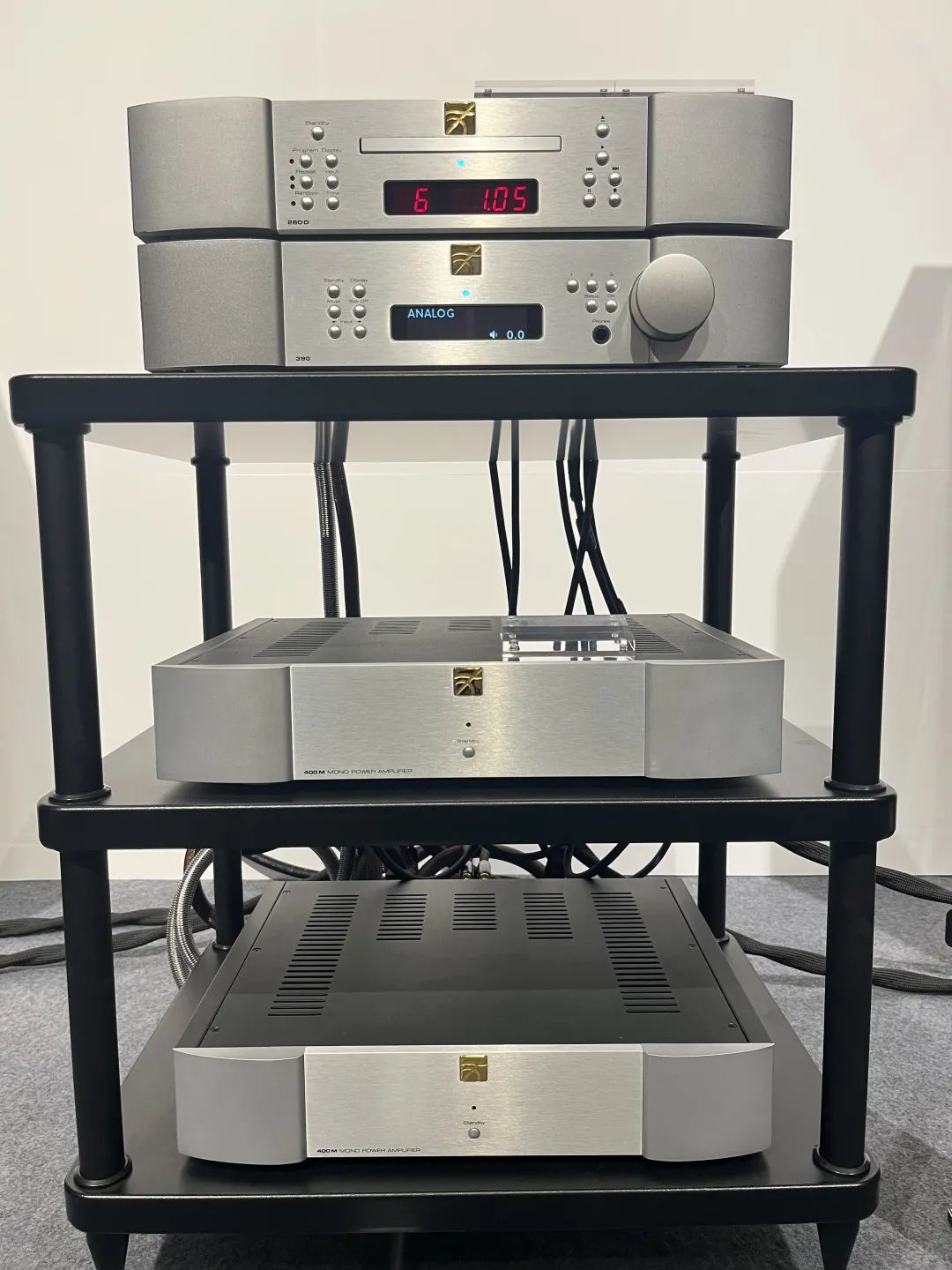 M600 單聲道后級放大器 于 8Ω 負載下提供 600W 輸出,于 4Ω 負載下提供雙倍1,200 W,而于2Ω 負載下再提供雙倍輸出達2400W。設計了專利的 超級電壓軌 Super Rail 線路,能更好的改善動態(tài),更低失真值和更好的控制音箱能力。大丹演示系統(tǒng)全套使用美國超時空線材。