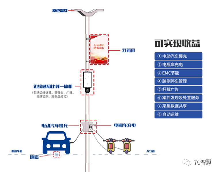 投資收益平衡的“微改套件”。給傳統(tǒng)基建設(shè)施,裝上分布式大腦,讓路燈桿升級成智能桿,讓傳統(tǒng)設(shè)施改造成數(shù)字基礎(chǔ)設(shè)施。智能桿“微改造,大收益”的“微改套件”模式,圍繞路燈桿進行微改造,因地制宜地在路燈桿裝上邊緣感知計算一體機、充電樁、燈箱屏、地磁等設(shè)備,整體涵蓋電動汽車慢充收益、電瓶車充電收益、EMC節(jié)能收益、路側(cè)停車管理收益、桿載廣告收益、案件發(fā)現(xiàn)及處置服務(wù)收益、采集數(shù)據(jù)共享收益等。