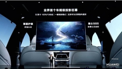 2023 年 12 月 26 日, 全景智慧旗艦 SUV 問界 M9 正式亮相, 該車搭載業(yè)界首個(gè)車規(guī)級(jí) 32 英寸投影巨幕, 由光峰科技提供核心器件, 激光顯示擁有 100% P3 色域, 巨幕可任意懸停, 伸縮收納, 萊茵護(hù)眼舒適認(rèn)證和瑞士 SGS 防暈認(rèn)證, 確保長(zhǎng)時(shí)間觀影不傷眼、不暈車, 在車輛行駛過程中也能穩(wěn)定觀看。