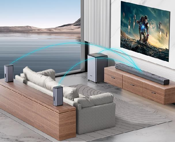 瀚宏智能家庭影院回音壁音響采用7.1.4杜比全景聲真無線全新設(shè)計,無論是在看電影、打游戲還是聽音樂都能享受逼真且沉浸式全景環(huán)繞體驗。支持藍牙連接,USB無損播放,電影、音樂、新聞模式任意切換,帶給你極致便捷的科技體驗感。