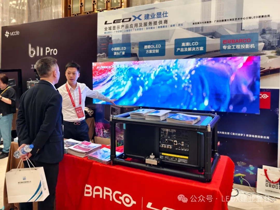 活動現(xiàn)場氣氛熱烈,1000 余名業(yè)內(nèi)嘉賓匯聚一堂,共同見證這一盛事。15 位企業(yè)代表和專家登臺進行技術(shù)交流,分享最新行業(yè)動態(tài)和創(chuàng)新成果,讓臺下觀眾收獲滿滿。101 家參展商精心布置展臺,展示各自的最新產(chǎn)品和技術(shù),吸引了大量觀眾的目光。其中,LEOX建業(yè)顯仕上海分公司作為參展商向大家展示了公司自主產(chǎn)品55吋LED無縫拼接屏和巴可UDM-W30投影系列等高端產(chǎn)品。