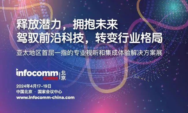 4月17-19日,中國(北京)國際視聽集成設(shè)備與技術(shù)展覽會(huì)(Infocomm China 2024)將在北京國家會(huì)議中心舉辦。本屆展會(huì)將云集400家全球領(lǐng)航及新晉的知名品牌,展示領(lǐng)先的專業(yè)視聽技術(shù)和集成體驗(yàn)解決方案,應(yīng)用于政府、教育、文娛、企業(yè)、智慧城市、智慧交通等超過30個(gè)垂直領(lǐng)域。