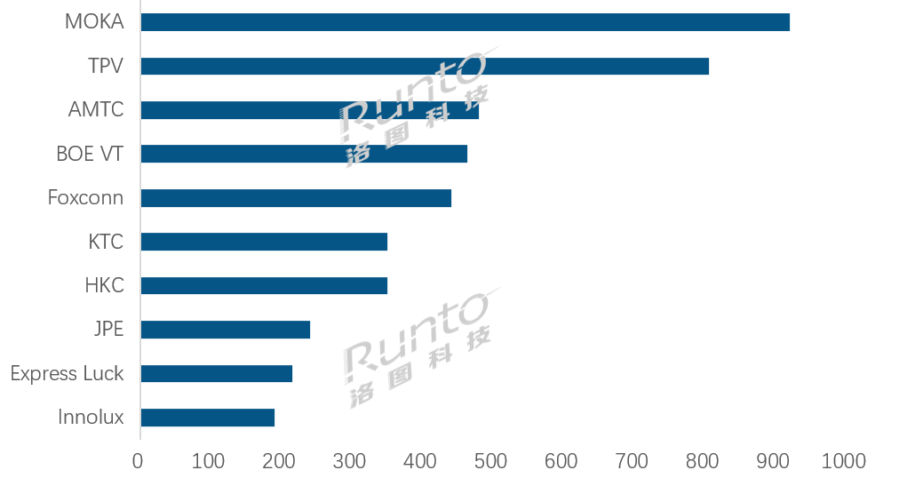 --Innolux(群創(chuàng))當(dāng)月出貨19萬(wàn)臺(tái),同環(huán)比均增長(zhǎng),排名專業(yè)代工廠第十。