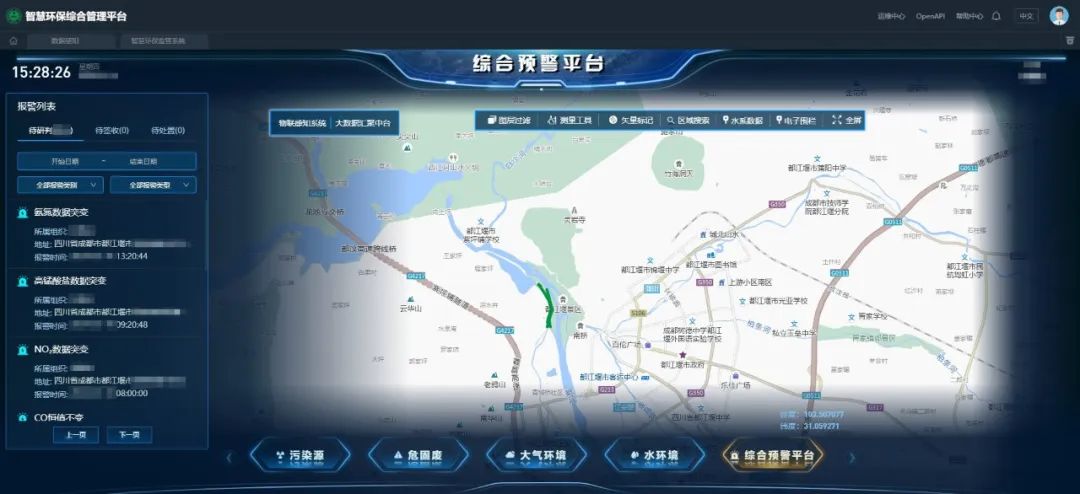 通過水質(zhì)監(jiān)測站、大氣監(jiān)測站等,水環(huán)境能基于各項數(shù)據(jù)更科學地展現(xiàn),管理中心統(tǒng)一匯聚、整合多方數(shù)據(jù)資源并地圖可視化展示,使得內(nèi)場運維人員可以在一個系統(tǒng)上完成對水環(huán)境各項指標的快速巡檢,及時了解區(qū)域內(nèi)的水質(zhì)情況。
