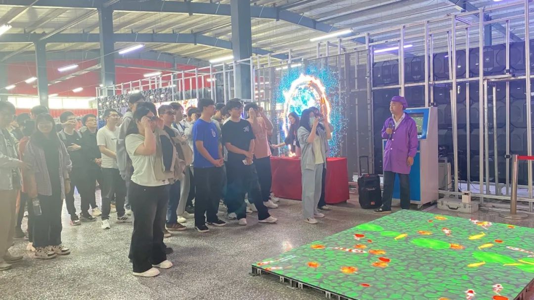 中北大學(xué)師生先后參觀了LED封裝、LED顯示屏生產(chǎn)車間。在參觀過程中,他們認(rèn)真聆聽了企業(yè)在產(chǎn)業(yè)規(guī)模、科技創(chuàng)新、市場(chǎng)開拓等方面的介紹,并詳細(xì)了解了LED燈珠、LED顯示屏產(chǎn)品的生產(chǎn)工藝。師生們對(duì)高科華燁集團(tuán)的LED產(chǎn)品展示區(qū)表現(xiàn)出了極大的興趣,尤其是裸眼3D、柔性屏、COB小間距系列和沉浸式體驗(yàn)區(qū),引發(fā)師生們駐足觀看。