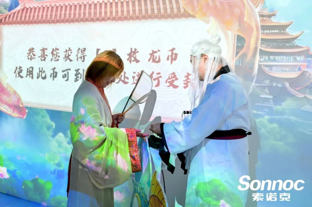 除了投影互動打卡,現(xiàn)場還精心設(shè)置了漢服體驗打卡區(qū)與蓋章互動環(huán)節(jié),為觀眾帶來了一場沉浸式的文化盛宴。眾多觀眾紛紛參與其中,身著華美漢服,漫步于索諾克Sonnoc投影打造的古色古香的沉浸式場景中,仿佛穿越時空,回到了那個風(fēng)雅飄逸的時代。