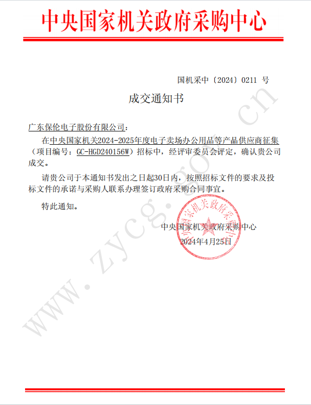 4月25日,中央政府采購(gòu)網(wǎng)發(fā)布“中央國(guó)家機(jī)關(guān)2024-2025年度電子賣(mài)場(chǎng)辦公用品等產(chǎn)品供應(yīng)商征集中標(biāo)公告”。itc保倫股份憑借優(yōu)異的產(chǎn)品品質(zhì)、過(guò)硬的技術(shù)實(shí)力和深厚的行業(yè)經(jīng)驗(yàn),在眾多廠商中脫穎而出,成功中標(biāo)入圍。