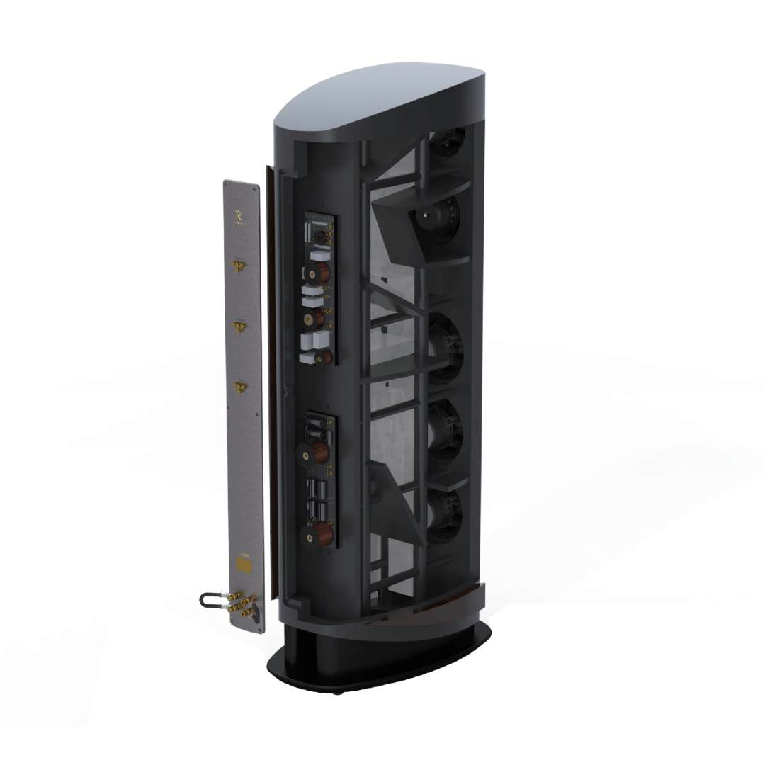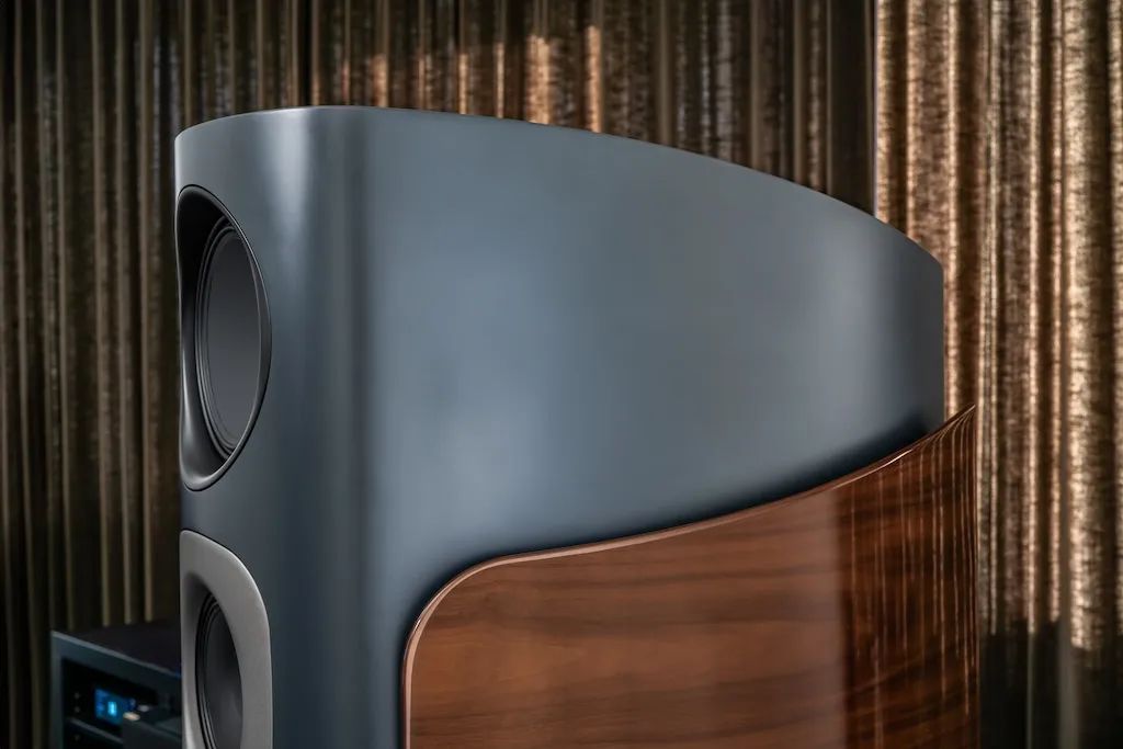 機身設(shè)計獨特,后部逐漸收窄,并以一整塊鋁板進(jìn)行封閉,鋁板垂直延伸,貫穿始終。此種構(gòu)造,經(jīng)過計算機輔助模擬與精細(xì)優(yōu)化,賦予多層多腔外殼卓越的穩(wěn)定性。此項工程之艱巨,可見一斑。然而,正是這樣的設(shè)計,使得Reference GS Edition能夠有效控制聲音轉(zhuǎn)換過程中產(chǎn)生的巨大力量,對整個結(jié)構(gòu)的沖擊。因此,驅(qū)動單元能夠無阻礙地釋放全部能量,避免因共振和振動導(dǎo)致的能量損失和音質(zhì)失真。尤為值得一提的是,Reference GS Edition作為Reference系列中的獨特存在,配備了側(cè)翼設(shè)計。這些側(cè)翼采用優(yōu)雅的實木飾面,呈現(xiàn)出獨特的拱形弧形結(jié)構(gòu),堅固而穩(wěn)重。側(cè)板與外殼緊密結(jié)合,不僅增強了Reference GS Edition的穩(wěn)定性和質(zhì)感,更在視覺上為其賦予了鮮明的個性。此外,側(cè)翼采用高光漆飾面,與機身的煙灰色絲綢啞光漆形成鮮明對比,既彰顯了產(chǎn)品的精湛工藝,又為用戶帶來了視覺上的享受。
