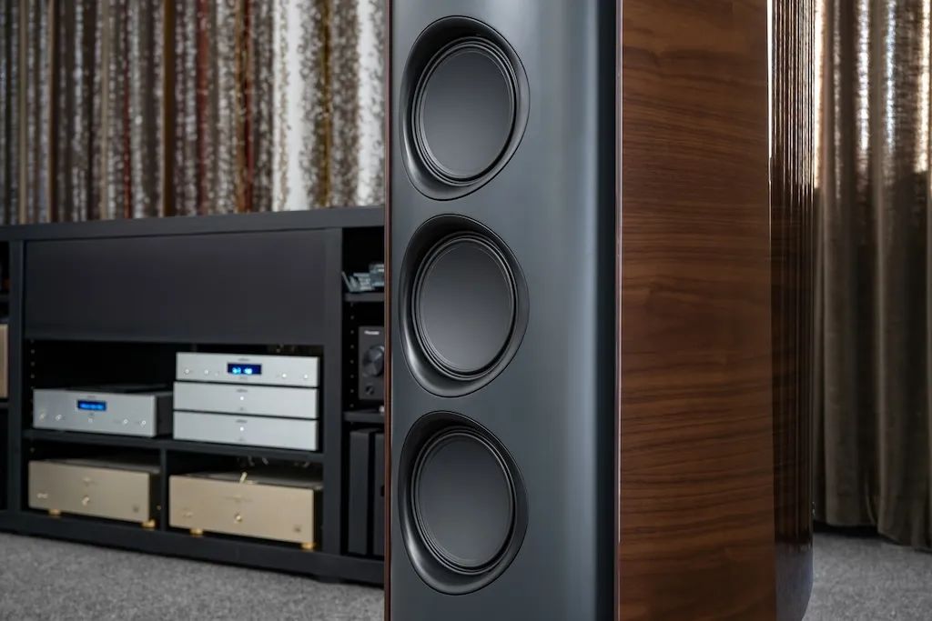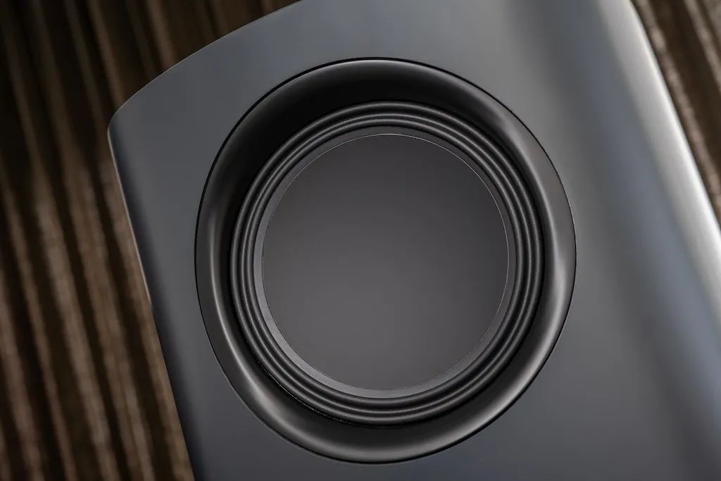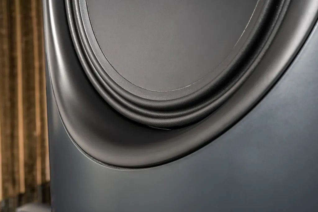 最上部的低音揚聲器。與其他三個低音單元一樣,它也采用了雙音盆設(shè)計,具有視覺上連續(xù)的音盆。
