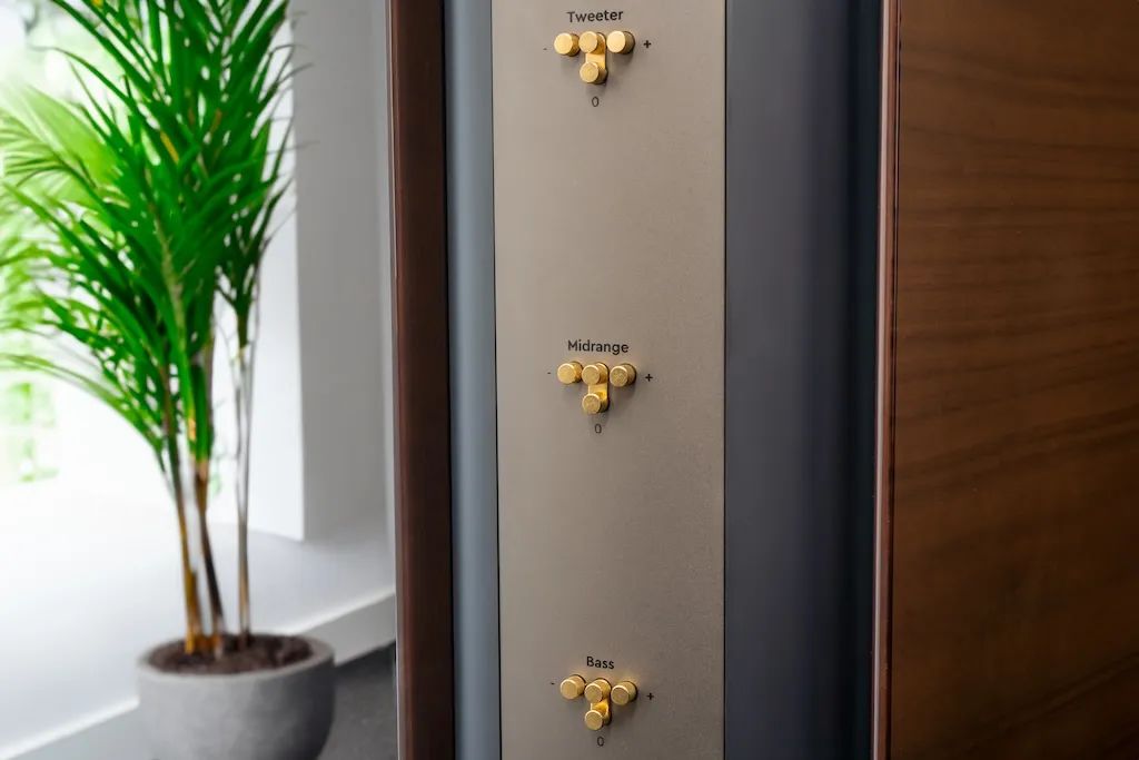 為滿足不同房間環(huán)境或個人聽音偏好的需求,Reference GS Edition特別引入了高音、中音和低音的獨立電平調(diào)節(jié)功能。用戶可根據(jù)自身喜好,對每個頻率范圍進(jìn)行±1.5分貝的微調(diào)。這一功能通過調(diào)整鍍金滾花端子間的鍍金橋板實現(xiàn),雖然操作稍顯繁瑣,但無疑為用戶提供了一個極具實用價值的解決方案。