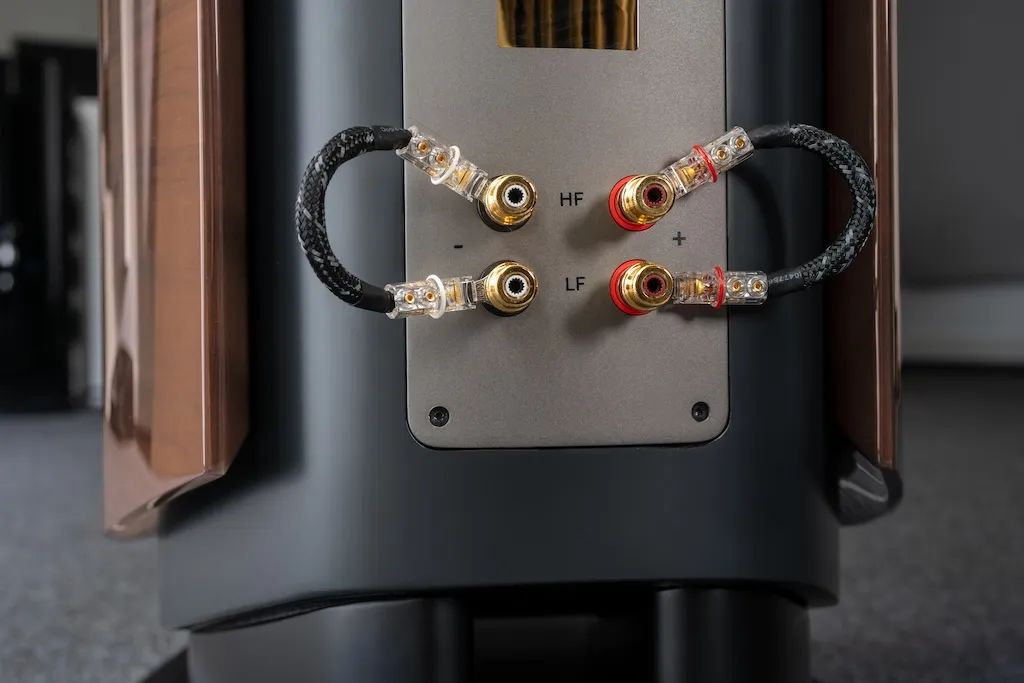 接線端子被安裝在鋁制后面板之上,這款接線端子是WBT下一代系列中的卓越型號。其設(shè)計獨特,四個端子能夠獨立控制高頻與低頻,從而達(dá)成雙線與雙功放的效能。同時,為確保信號傳輸?shù)姆(wěn)定性與效率,canton特別選用了由WBT nextgen電纜插頭與CantoLink 600電纜共同構(gòu)成的電纜橋架。這一組合不僅能提供卓越的電氣性能,還確保了接線端子的穩(wěn)固與可靠。