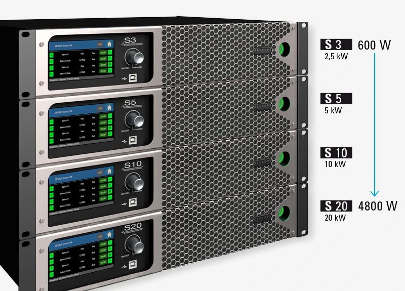 最后不得不提的就是這套定制“核潛艇”電音系統(tǒng)的驅(qū)動功放,同樣是由同廠推薦的四通道系統(tǒng)DSP功放S10/S20:4×4800W/4Ω(高達(dá)近兩萬瓦)的高功率低失真輸出,S系列的4通道放大系統(tǒng)控制器將最先進(jìn)的電力電子設(shè)備與先進(jìn)的DSP相結(jié)合,可以通過觸摸顯示屏方便地進(jìn)行操作。其智能功率共享功能確保在驅(qū)動不對稱負(fù)載時(shí)非常有效地使用可用功率。根據(jù)AES 67標(biāo)準(zhǔn),可通過GPIO和以太網(wǎng)音頻(AoE)進(jìn)行擴(kuò)展。