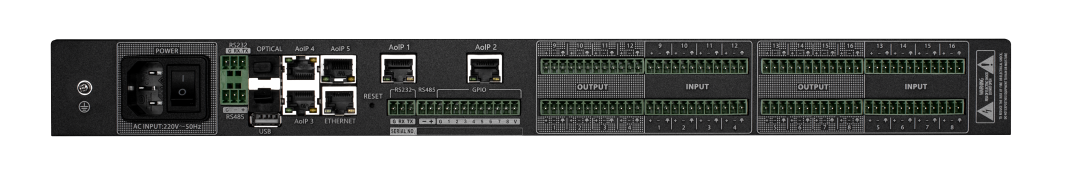 體育中心一層使用了CMX系列16進16出音頻矩陣共2臺,支持多種音頻處理和傳輸技術(shù),具有高品質(zhì)的前置放大電路和DSP處理總線結(jié)構(gòu),每臺負(fù)責(zé)一個區(qū)域的音頻信號處理。
