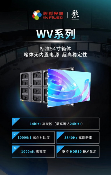 WV系列是一款為控制室、高端會(huì)議室、指揮中心以及高端廣播等應(yīng)用場(chǎng)景打造的高性能顯示屏,標(biāo)準(zhǔn)54寸箱體兼容VESA安裝的顯示屏,采用輕薄設(shè)計(jì),箱體無內(nèi)置電源,快速安裝便捷維護(hù),兼具1000nits高亮度,10000:1對(duì)比度等高性能顯示優(yōu)勢(shì),帶來極致視覺體驗(yàn)。
