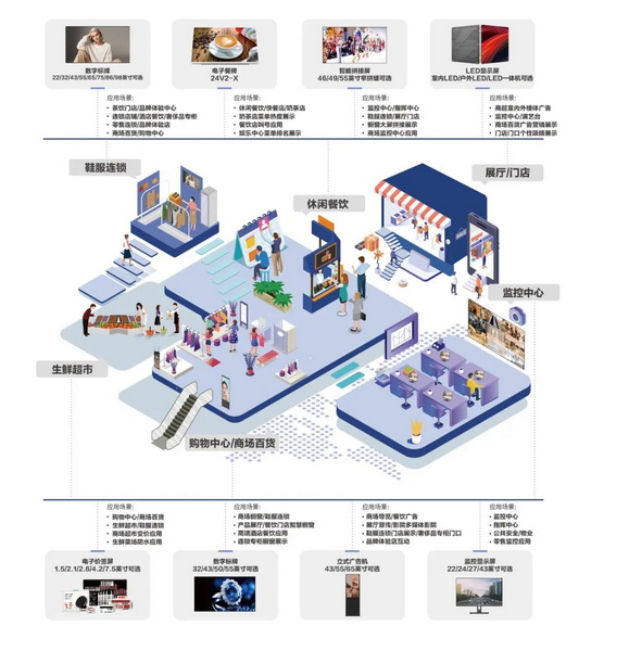 同時,針對企業(yè)用戶,AOC踐行涵蓋智能會議平板、數字標牌、拼接屏、商用大屏、小間距LED等六大產品線的全屏戰(zhàn)略布局,為交通、教育、醫(yī)療、新零售、企業(yè)辦公等五大行業(yè)用戶,提供更多、更豐富的定制化商用顯示產品,進一步為全國更多單位和企業(yè)量身定制更具針對性的行業(yè)視訊解決方案。如為瓜子二手車全國六十二家嚴選門店帶去近六百片的商用拼接屏產品;為古茗茶飲、開心吧等全國便利連鎖店提供智慧零售展示解決方案;為北京大興國際機場、中國聯通北京通信電信博物館、上饒廣豐區(qū)電視臺融媒體中心等提供智慧信息展示解決方案!