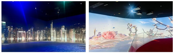 科視Christie DWU880-GS和DWU500S投影機以其出色的性能、色彩精確度和可靠性,成為滿足該項目技術要求的關鍵設備。這些裝置包括了創(chuàng)新的設置,如三折屏幕、全景五折屏幕和大型曲面顯示屏。這些展覽的總投影面積達到了980平方米,視覺效果令人印象深刻,其中最大的單塊顯示屏尺寸為7.68米乘以4.8米。