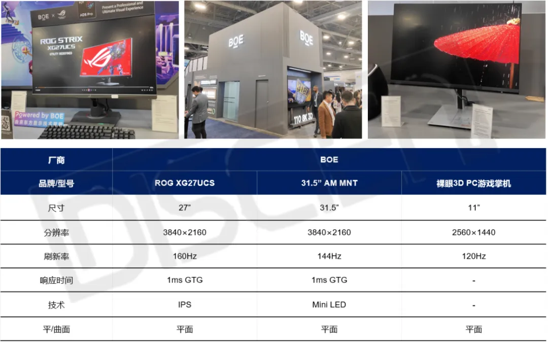 BOE(京東方): BOE在本次帶來(lái)了ADS Pro、f-OLED以及α-MLED賦能的新產(chǎn)品。在LCD電競(jìng)顯示器方面,ROG 絕神27 XG27UCS電競(jìng)顯示器由京東方技術(shù)品牌ADS Pro賦能,采用27英寸的面板設(shè)計(jì),支持4K分辨率和178°廣視角,玩家無(wú)論從哪種角度觀看,都能獲得一致的清晰且細(xì)膩畫(huà)面。在α-MLED方面,BOE展出了目前行業(yè)內(nèi)尺寸最大的31.5英寸4K玻璃基主動(dòng)式Mini LED顯示器。此外,還有首款裸眼3D PC游戲掌機(jī),配備了由京東方獨(dú)供的11英寸2.5K 120Hz高刷屏,搭載了京東方獨(dú)家自主研發(fā)的全套裸眼3D顯示技術(shù)方案和人眼追蹤系統(tǒng),成為首款無(wú)需任何輔助設(shè)備即可實(shí)現(xiàn)2D/3D視效切換的游戲掌機(jī),為玩家?guī)?lái)全新的沉浸式娛樂(lè)體驗(yàn)。